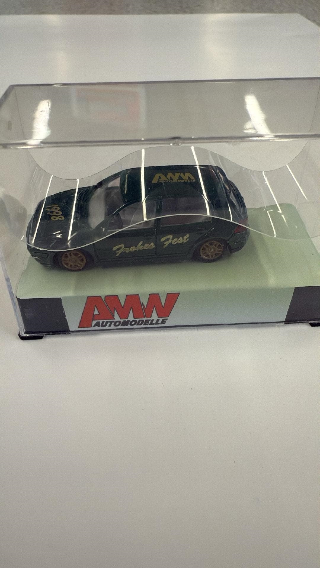 Entdecken Sie den legendären AWM VW Golf von 1998 als Ausstellungsmodell im Maßstab H0 – ein