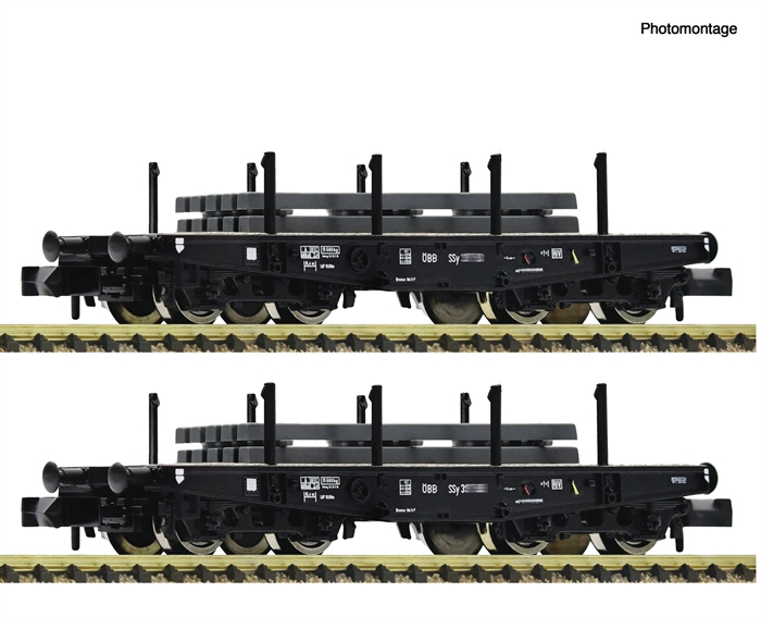 Wagenset mit zwei Schwerlast-Flachwagen, Gattung Ssy, der Österreichischen Bundesbahnen.