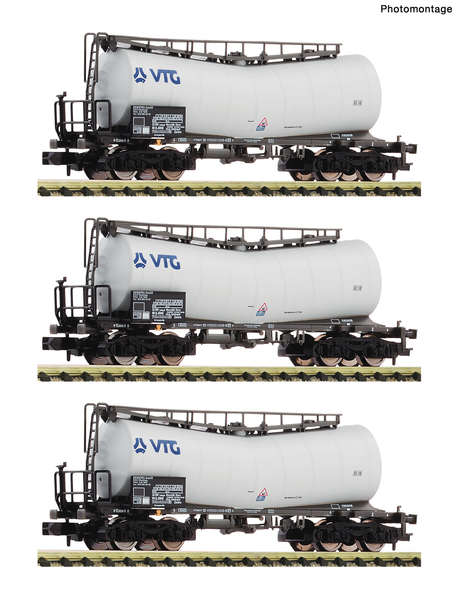 Wagenset mit drei 4-achsigen Knickkesselwagen, Gattung Zacns, der VTG.