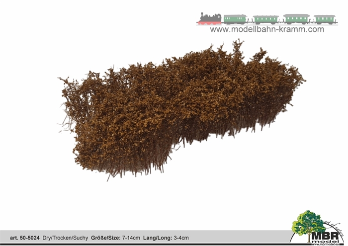 ### Produktbeschreibung für MBR 50-5024 Busch, Trockenbusch Entdecken Sie die naturgetreue Schönheit unseres MBR 50-5024 Busches, der Ihrem Landschaftsprojekt oder Ihrer Modellumgebung einen Hauch von Natur verleiht. Diese sorgfältig gefertigten Trockenbuschmodelle sind ideal für alle, die realistische Miniaturlandschaften gestalten möchten. **Produktdetails:**