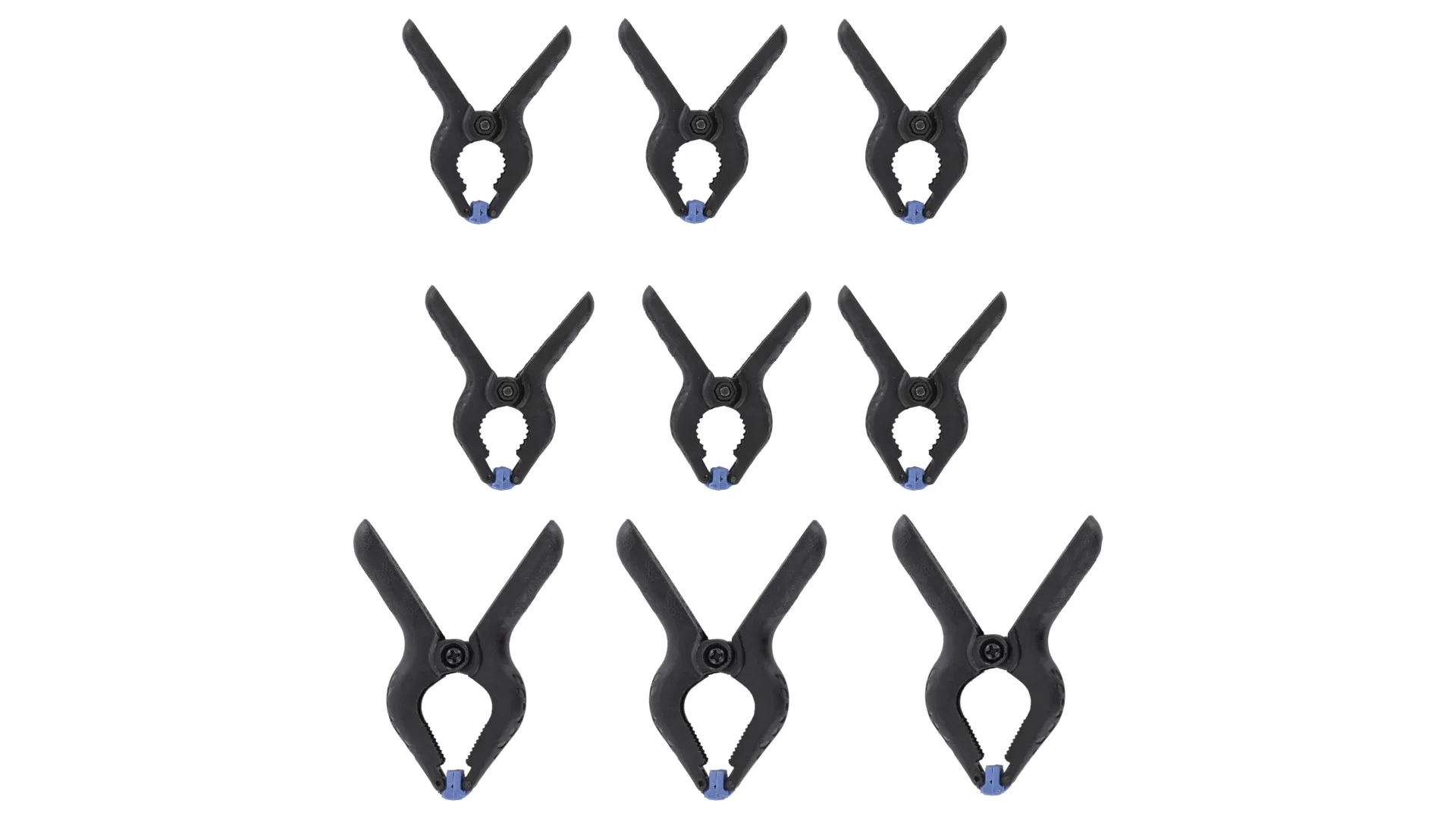 Das Set enthält insgesamt neun Klemmen in verschiedenen Größen. Dank der flexiblen Klemmbacken mit
