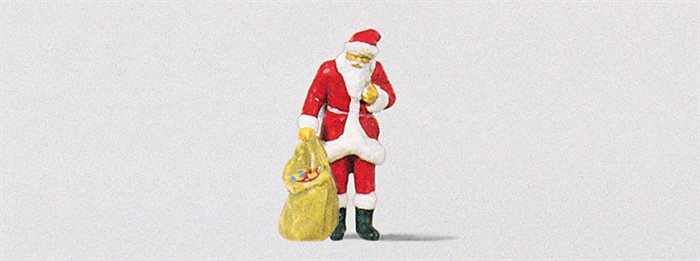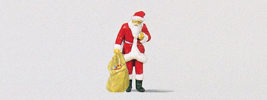 Integrieren Sie den Preiser Weihnachtsmann mit Geschenkesack in Ihre Modellbahnlandschaft und