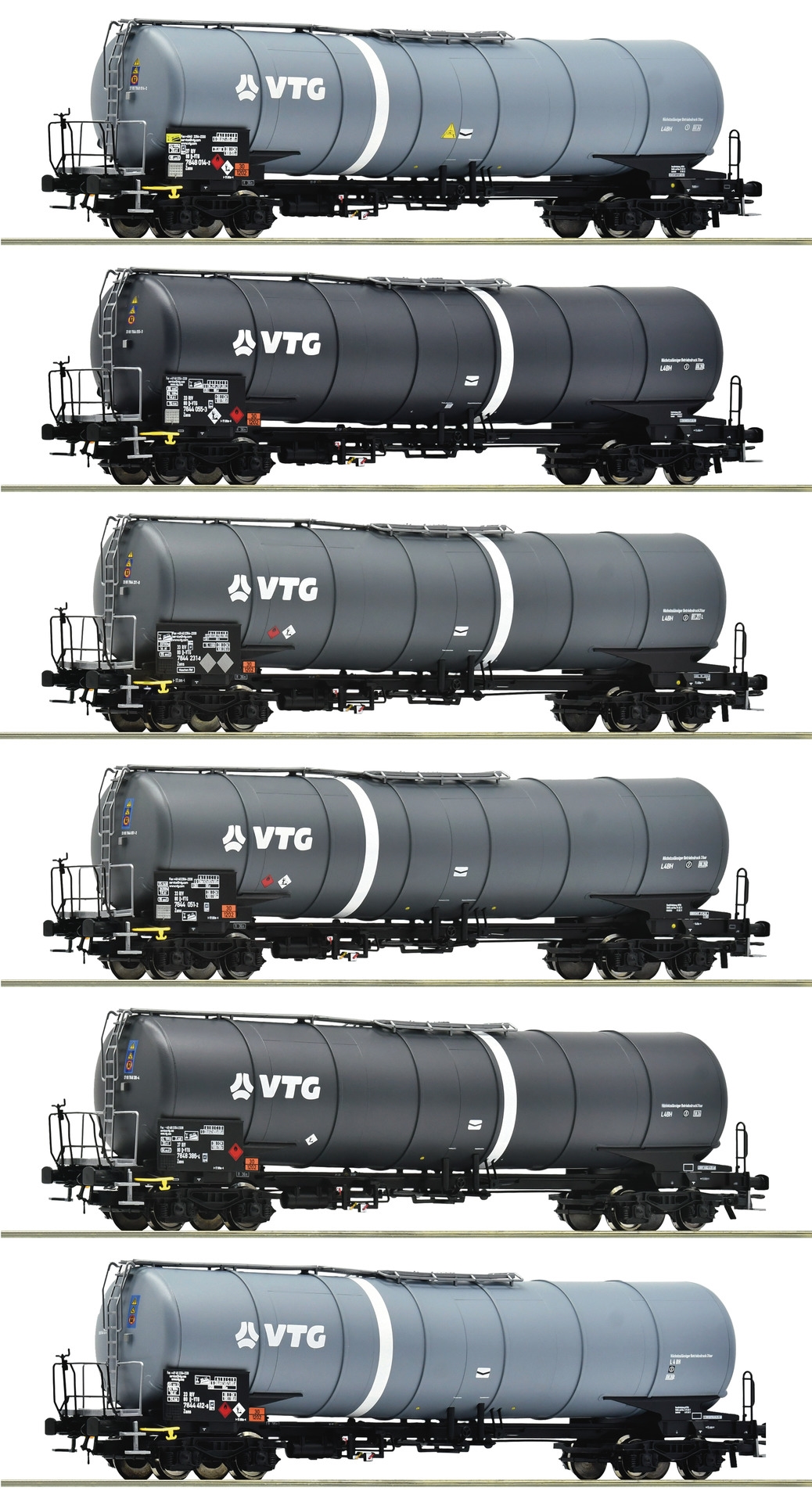 6-teiliges Display: Kesselwagen, Gattung Zans, der VTG.